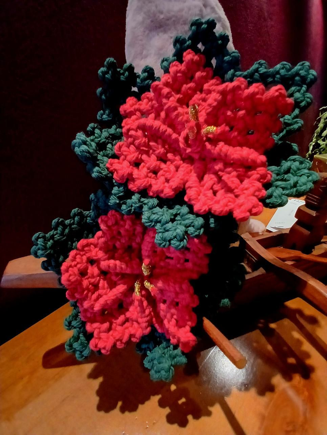 Découvrez cette magnifique rose de Noël en macramé, une création entièrement faite main qui apporte une touche chaleureuse et artisanale à votre décoration de fêtes. Réalisée avec un fil de qualité, cette fleur rouge et verte rappelle le traditionnel poinsettia, symbole incontournable de Noël.